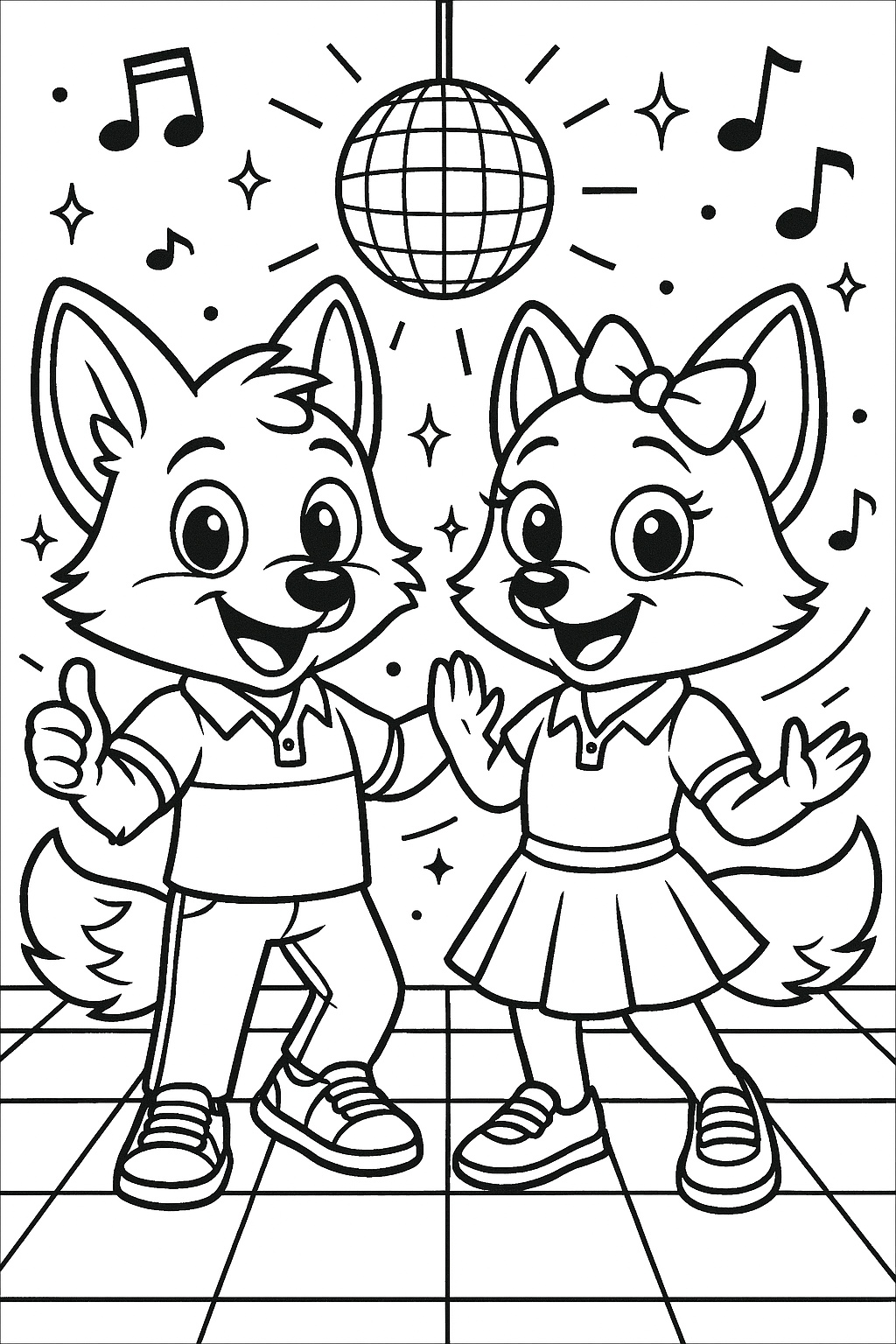 Kleurplaat 4 - Acey & Dacey in de discotheek