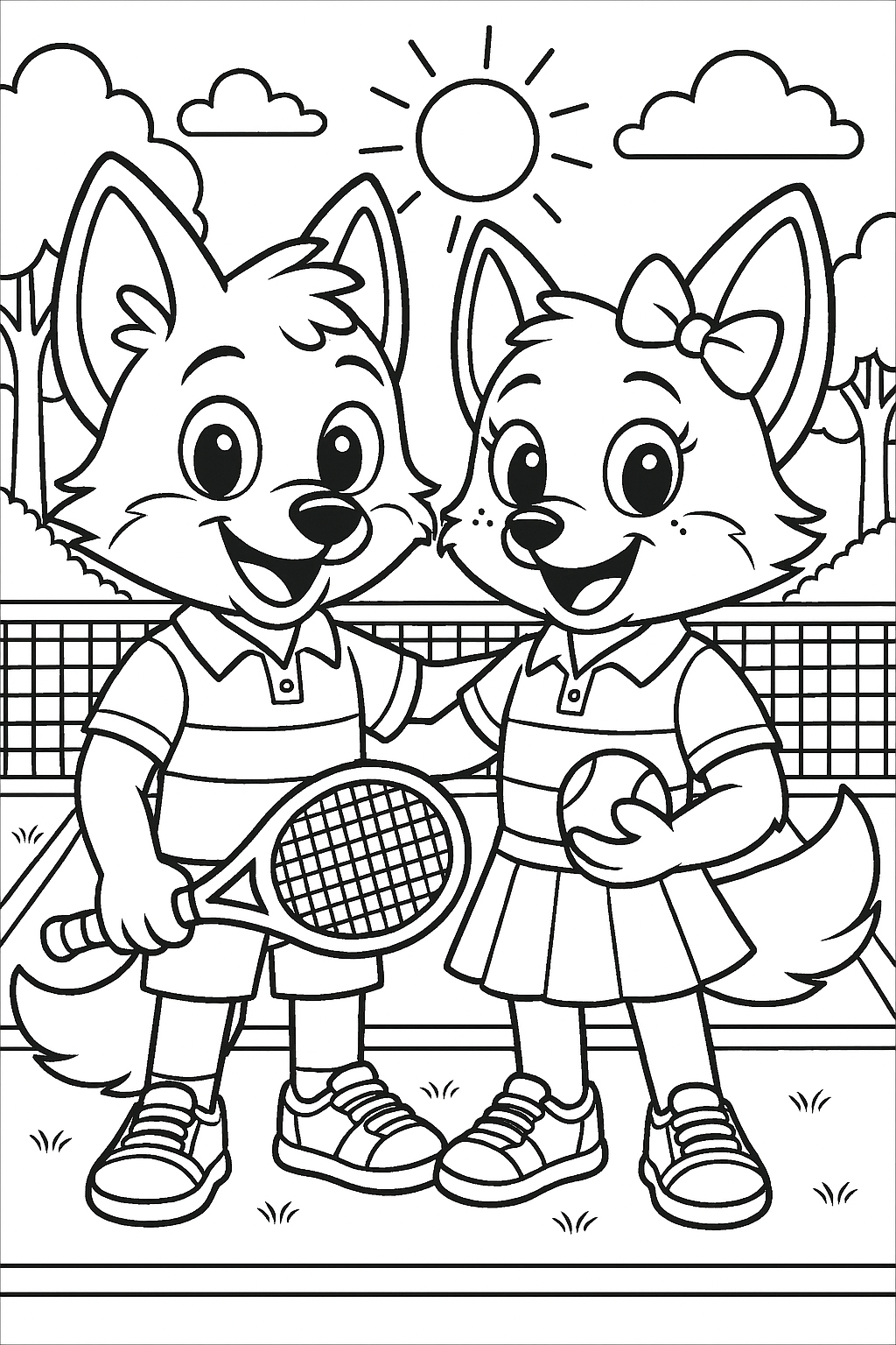 Kleurplaat 1 - Acey & Dacey op de tennisbaan